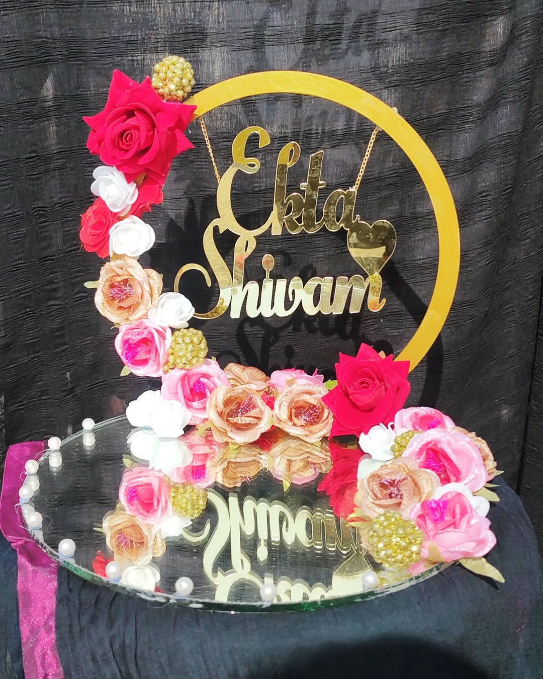 Customised engagement platter ❤️🪩 Mirror base with flowral decor 😍 Order now!! . . . #engagementplatter #wedding #trending #shopsmall #supportlocalbusiness #shoplocal #smallbusinesswomen #ourgwalior #customised #weddingseason #instagram